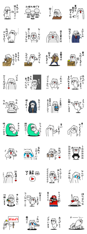 全力でうざい全力でおちょくるあざとかわいいねこのおふざけが止まらない!刑事・ラッパー・サラリーマン・侍などに扮しておおいにふざける使いやすいお調子者スタンプ。