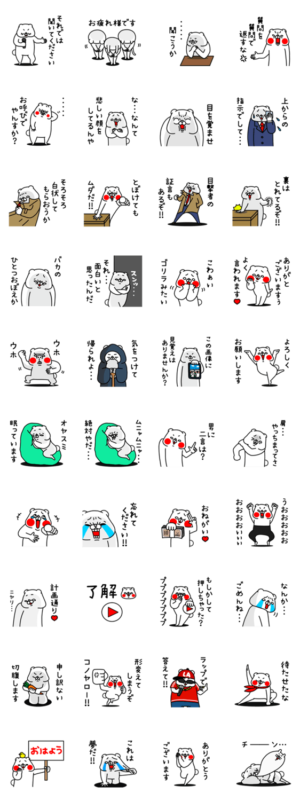 全力でうざい全力でおちょくるあざとかわいいくまのおふざけが止まらない!刑事・ラッパー・サラリーマン・侍などに扮しておおいにふざける使いやすいお調子者スタンプ。