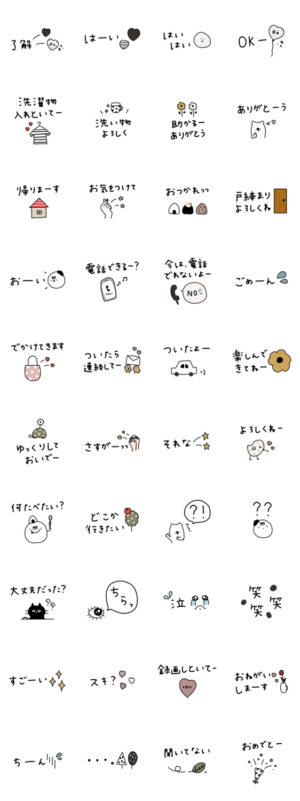 連絡に便利なちょっぴり可愛いスタンプ。大人女子でも使いやすいシンプルにまとめたスタンプです。mame mametaro より発売