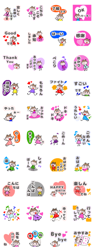 毎日使える文字入りの可愛い女の子のスタンプです♡flower.a より発売