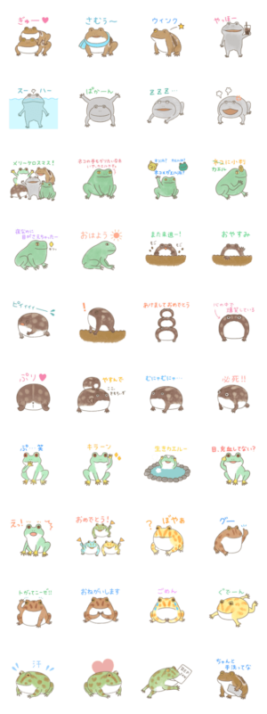 爬虫類・両生類専門誌レプファン公式のラインスタンプ第4弾。今回はカエルコレクション。可愛いカエルたちが毎日の会話に役立ちます。