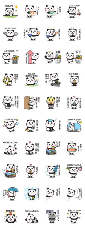 ぱんだの家族の連絡用に使える言葉を集めたとっても使いやすいスタンプです♪パン より発売