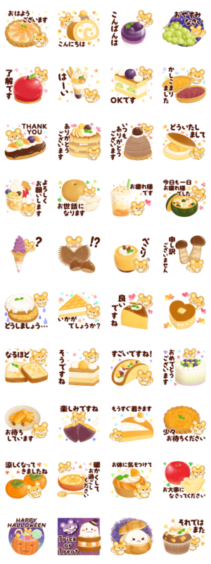 かわい〜!リスと美味しそうな秋のスイーツの可愛すぎるスタンプ!