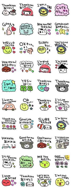 シンプルな日常会話スタンプです。日本語&英語スタンプnenerin より発売