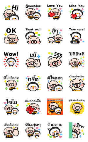 おやじ君とペンギンちゃんの飛び出すタイ語スタンプ!かわいい動きでサワッディー♪