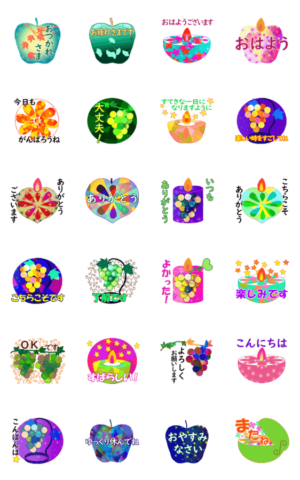 「動く!フルーツキャンドルとランプ」の毎日使えるあいさつです。SEA&SKYv より発売