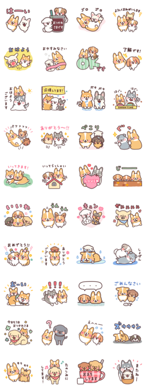 まるまるコーギーがたくさんのわんこと一緒にスタンプになりました!柴犬やシーズー、トイプーやポメラニアン、ペキニーズにヨーキーにダックス…色んな犬種が盛りだくさん!