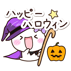 リボンを付けた可愛い『しろりぼん』の【秋】スタンプです。よく使うあいさつ等、秋の飾りをイメージした、かわいいスタンプ。【かたこ】ハロウィン/ハロウィーンかたこ より発売