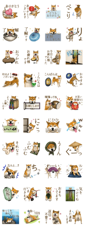 喜怒哀楽色々入って様々なシーンで使いやすい柴犬のスタンプです。