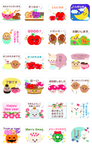 【秋冬】敬語スタンプ/毎年使える/年末年始の挨拶にも/かわいい/スイーツ/フルーツ/承認致しました/了解です/ありがとうございます/お願いします/お大事に/mamama-chin 現在この商品は一部のスマートフォン版LINE 10.3.0以上のトークルームでのみ使用できます。動作環境の最新情報はヘルプをご確認ください。mamama-chin より発売