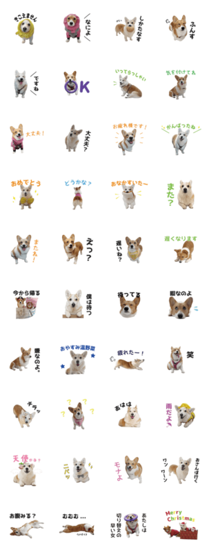 「コーギー犬ノエさん」のノエさんとモナちゃんのMIXスタンプです。onekao より発売