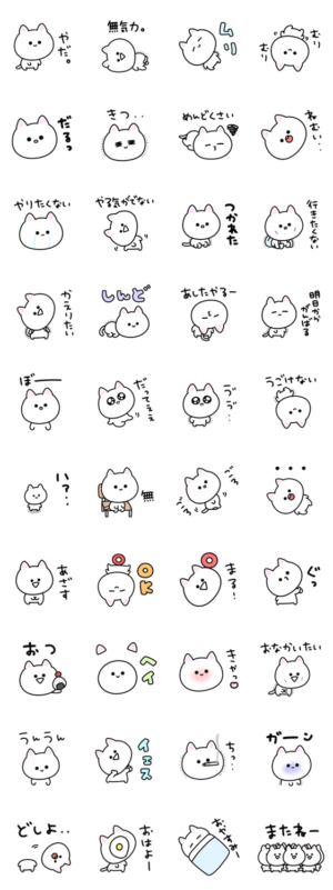 一生やる気が出ない。シュールなミニ白ねこのスタンプです。eribo より発売