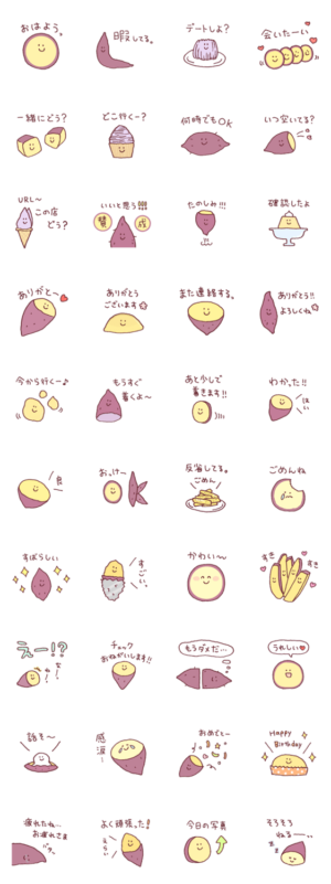 さつまいも/焼き芋/スイートポテト/お芋チップス 大好きな薩摩芋をスタンプに◎ 友達・恋人・家族に…たくさん使ってください!!Ako.* より発売