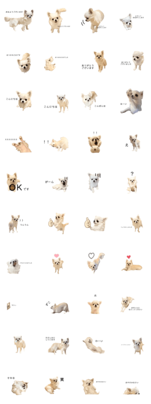 チワワ/ロングコート/クリーム/ホワイト/白/犬/シンプル/挨拶/あいさつ/敬語/丁寧語/毎日使える/毎日/日常/日常会話/リアクション/あいづち/基本スタンプ/便利/動物/リム