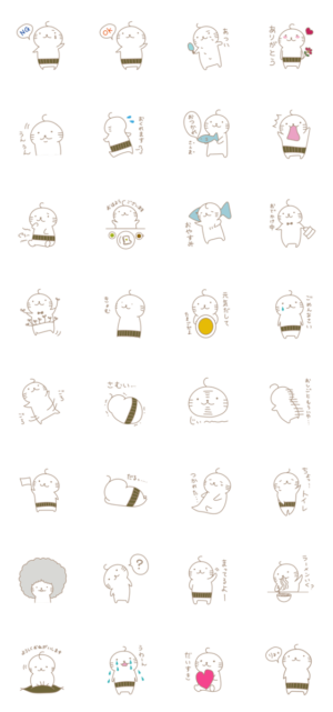 hm26(アパレルブランド)の公式ブランドキャラクター「ごまたろう」のスタンプです。 ゆるいお顔のあざらしのような生き物です。hm26 chihiro seya より発売