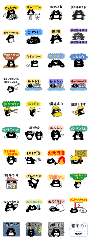 災害時に使えそうなスタンプがそろっている作品。こういうコンセプトのものはなかなかないので使い出がある。ただ、使う時は安全に気を付けて。