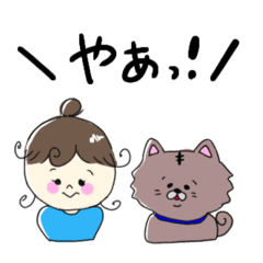 ほのぼの女の子とトラ柄のわんちゃんのほっこりスタンプですえがわんご より発売