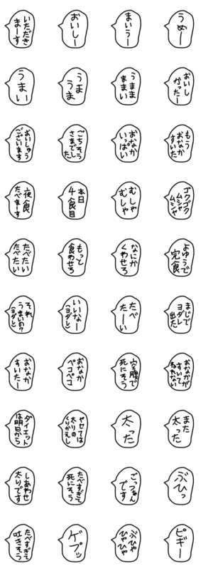 食べることが大好きな人の吹き出し。 スタンプ画像一覧