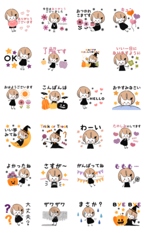 人気のガールがミニサイズで登場しました。ハロウィンや日常に使いやすいスタンプなど入ってます。おはよう/こんにちは/おやすみ/ありがとう/了解/OK/おつかれさまNAKAYUKA より発売