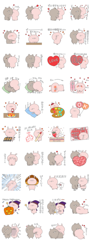 カップルで使える、こちらは彼女用(うさぎ)のスタンプです。彼氏用(くま)もあるので、毎日ラブラブな2人で愛を贈りあってください♡1〜11を繋げるとも〜っとラブラブ♡