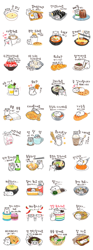 小さなハムちゃんに美味しい韓国料理を添えて。流行りのスイーツも。 ハングル/敬語、丁寧語多め/ジャンガリアンハムスターtattsun より発売