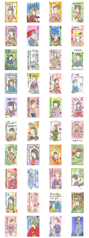 着物女性が織り成す和風スタンプ[夢かざり]のダウンロードはこちら↓
