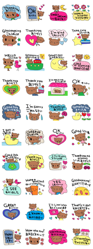 シンプルな日常会話スタンプです。日本語&英語スタンプnenerin より発売