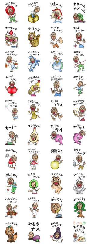 昭和の香りがぷんぷん漂うお爺ちゃんが渾身の駄洒落をしてくれるスタンプです