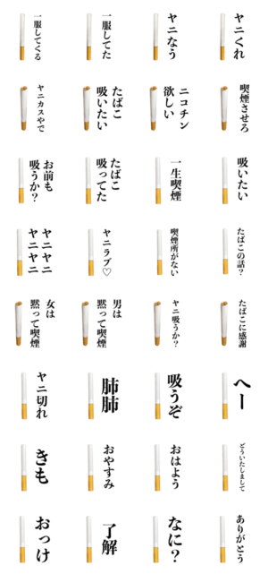 言葉の横にタバコが1本あるスタンプがシュールで今までに見たことがなく面白いです!
