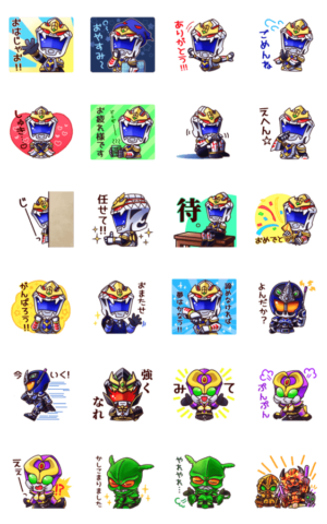 山口県岩国市で生まれた「岩国のシロヘビ」をモチーフにしたご当地ヒーロー「清流光神ハクジャオー」のスタンプ第1弾!