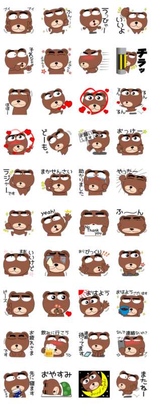 クマ(熊)のスタンプ。基本セット。毎日よく使う言葉を揃えました。会社でも家族でもカップルでも。敬語もあるよ。朝から晩までずっと使えます。urajo より発売