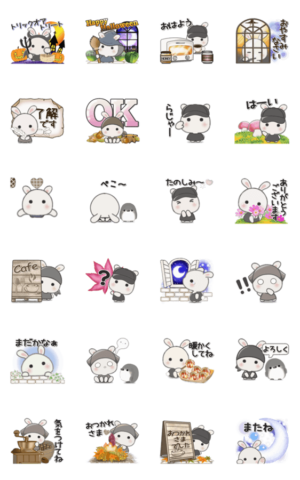 カフェうさぎが秋を満喫♪ 楽しく動く秋のほのぼのスタンプです。ぽてこ より発売