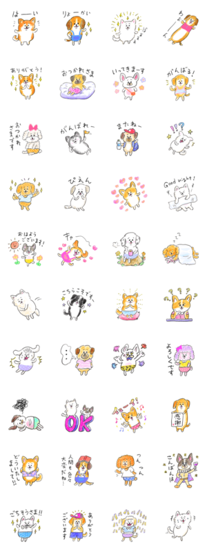 11月1日の“犬の日”を記念してスタンプを作りました。むちむちぽよぽよした可愛い幼児体型のワンコがいっぱいですよー。イッレ・コスヤ より発売
