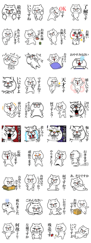 いやらしい顔のウザ〜〜い猫の会社でも使える敬語のスタンプです。