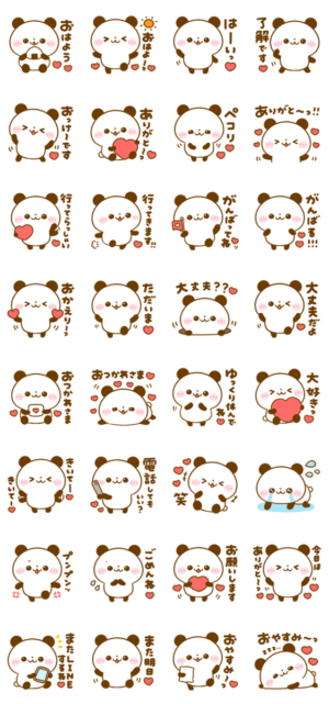 ハートいっぱい♡ころころパンダのシンプルなスタンプです。ぴよたぬき♡ より発売