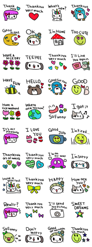 シンプルな日常会話スタンプです。英語スタンプnenerin より発売
