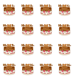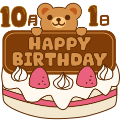 10月1日2日3日4日5日6日7日8日9日10日11日12日13日14日15日16日のハッピーバースデー。誕生ケーキのチョコの裏から小さな熊がひょっこりピコッと顔を出します!