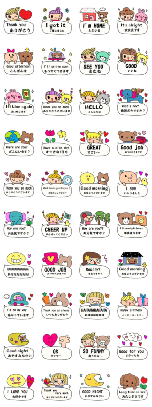シンプルな日常会話スタンプです。日本語&英語スタンプ