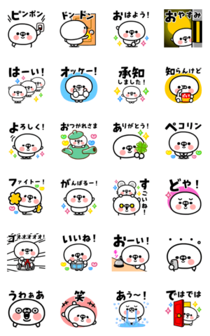 顔文字キャラクターっぽいかわいさのあるキャラクターがメイン。全体的に主張しすぎず埋もれ過ぎずなデザインで、メッセージの汎用性もなかなか。