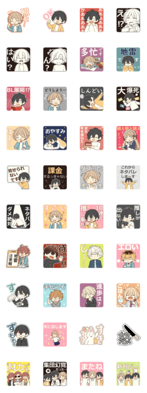 すずり街先生オール描き下ろし、腐男子ぞろいの早乙女家がLINEスタンプになりました。日常から推し活まで…幅広く使えるメッセージを盛りだくさんでお届けします!スクウェア・エニックス より発売