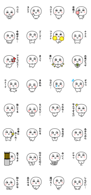 無表情・真顔・不愛想のまるお君。芋ジャージの名前スタンプのくーが作。くーが より発売