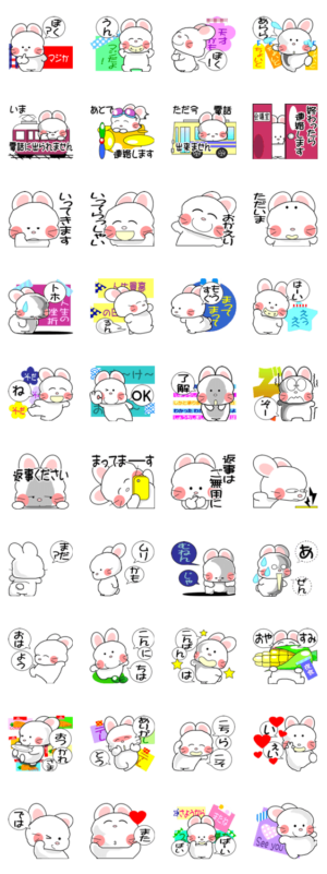 シロネズミに見えるうさぎのスタンプ。どことなく2000年代みがある。汎用性は普通に高い。