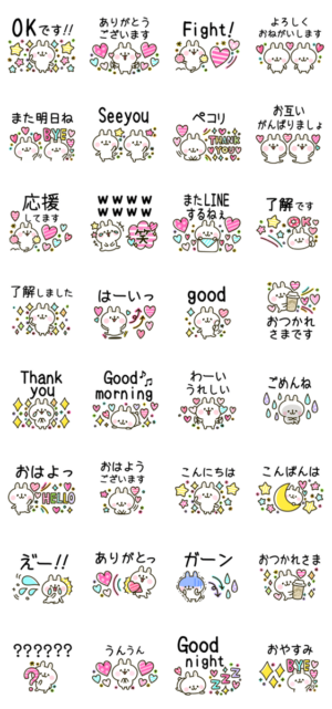 カラフルうさぎの可愛い♡男女問わず誰でも使える無難な日常会話セットです。