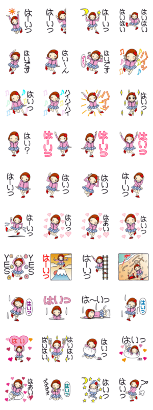 いつも暇をもてあましてるひま子ちゃんの今回は、毎日元気にはいと返事する大人のはい女子スタンプです。よろしくお願いします!