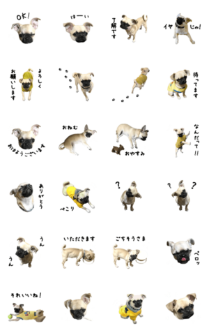 チワワでもあり、パグでもある、珍妙な犬のスタンプです。Counosuke より発売