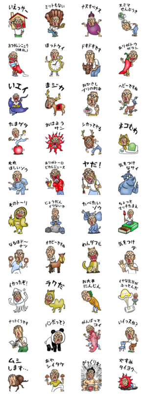 昭和じいが全力でだじゃれコスプレしているスタンプです。寒いとか言わないで〜