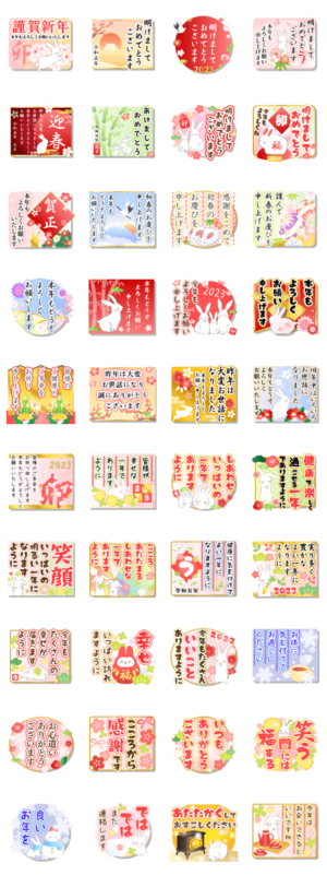 誰でも使える優しい文章の年賀状スタンプです。想いを伝えるフレーズも新年の挨拶のフレーズも使いやすい文章を詰め込みました♪家族や友人、仕事関係ママ友とのご挨拶に♪※2023/1/3(火)23:59までに購入すると特典「LINEおみくじ」がもらえます。ウォームスクリエイト より発売