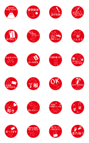 2023年(令和5年)干支はうさぎ年(卯年)。アニメーションスタンプ卯、印鑑(はんこ)風。冬(年末年始正月)や日常で活躍スタンプ。誕生祝は年男、年女の方に向けても。※2023/1/3(火)23:59までに購入すると特典「LINEおみくじ」がもらえます。うどんみかん より発売