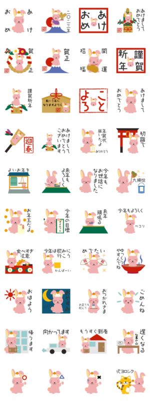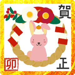 鏡餅をのせためでたいウサギのスタンプのダウンロードはこちら↓