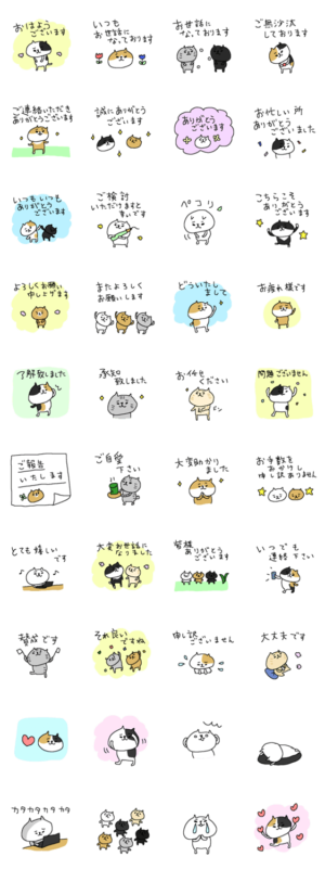 にしおかあきのゆるゆるネコさん。お仕事でもサークルでも使える敬語が沢山のゆるっとしたビジネススタンプです。プレゼントにも。にしおかあき より発売